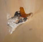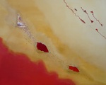 2008roos, figuratief op paneel karton, structuurpasta en lommels zand in acrylverf